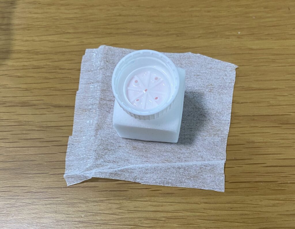 接着芯の上に、メラミンスポンジと穴あきのキャップを乗せ、