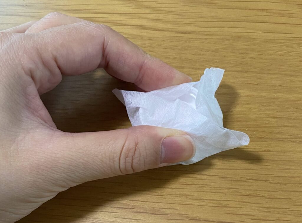正直適当な布でよいと思うのですが、あとで布ごとキャップのふたを閉めるのでできるだけ薄い方が良いです。