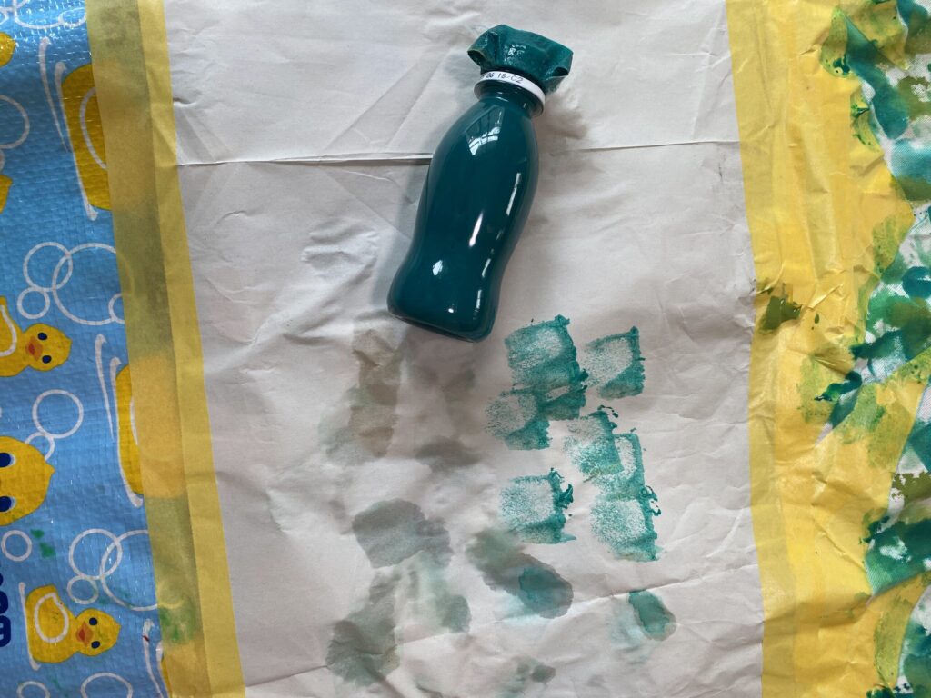 スポンジが容器の口に詰まっているとはいえ、ふさがっていない状態なので絵具はどんどん出てきます。出る量を調整することも難しいと感じました。