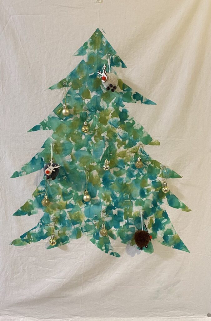 子供と楽しむ!絵の具でポンポン🎨布のクリスマスタペストリー作り
