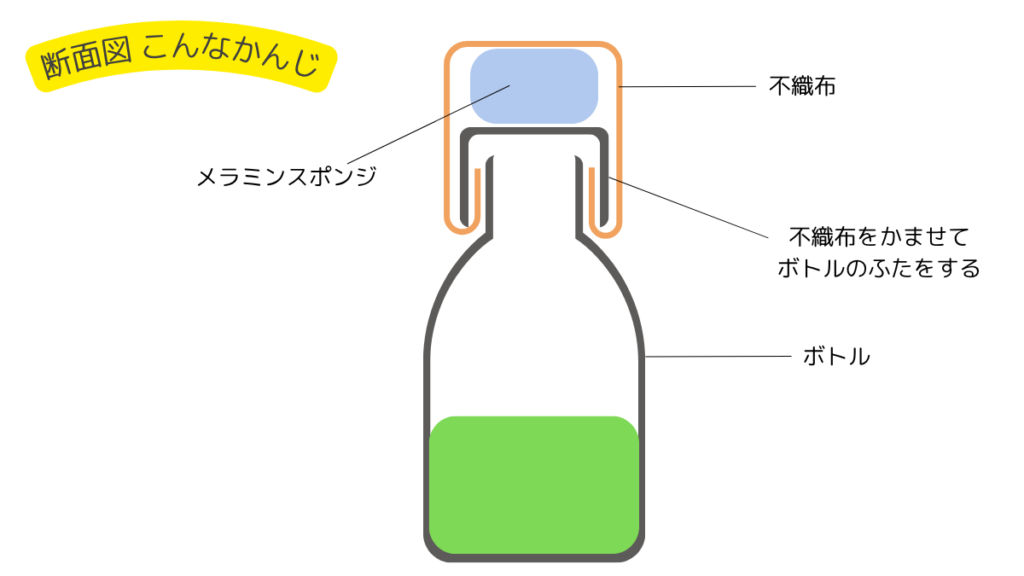 その上にメラミンスポンジ+穴あきキャップを重ね、布ごとキャップを包む