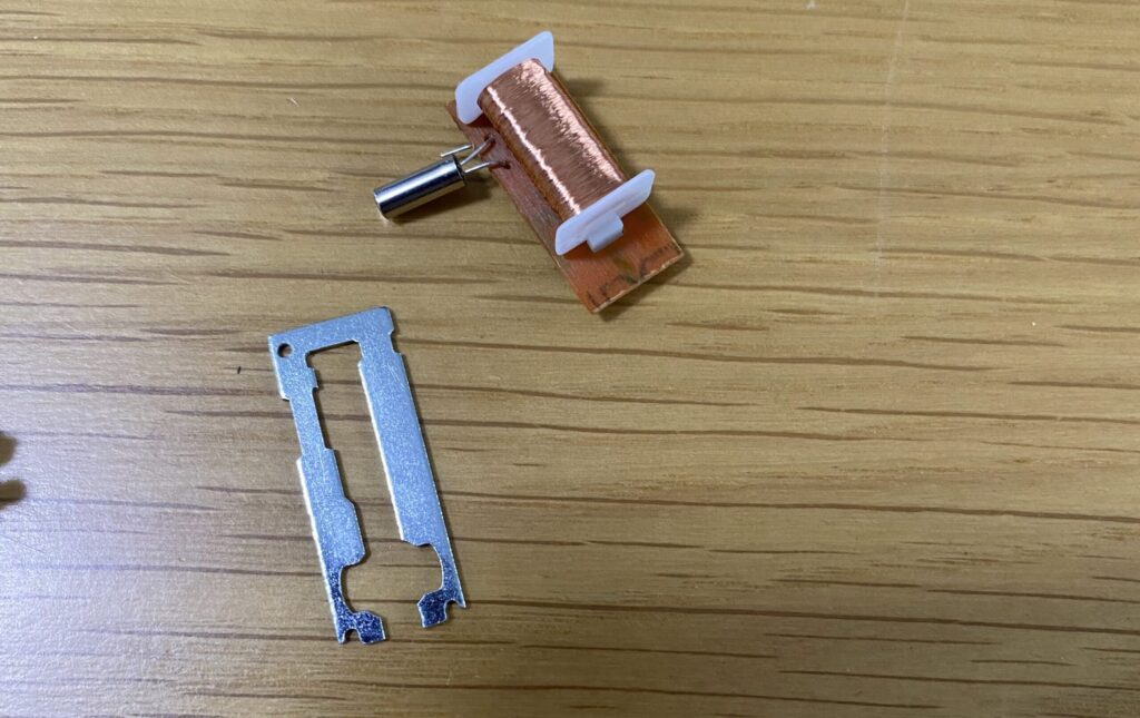 コイルの部分はU字型の金属パーツ と 銅線が巻かれたパーツ(電磁コイル)に分かれます。