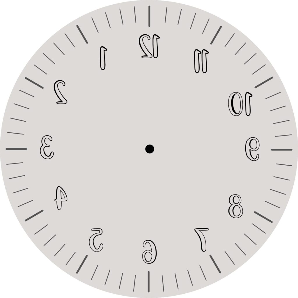 左右反転した文字盤 + 針は反時計回りに進む