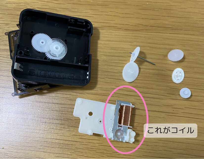 歯車を一つ一つはずして、コイルの部分を取り出します。