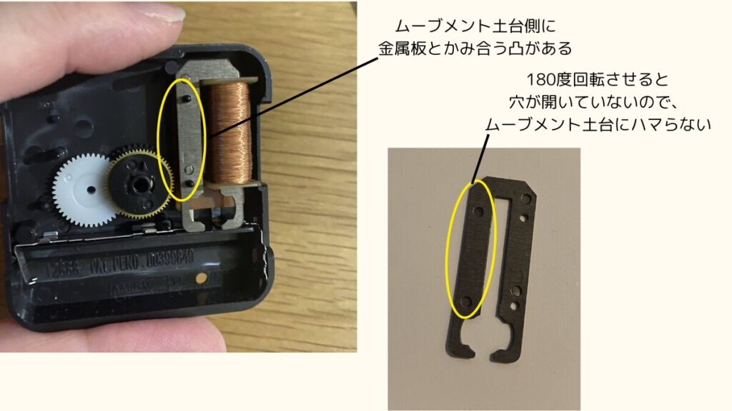 失敗②:金属板がムーブメントに収まらない